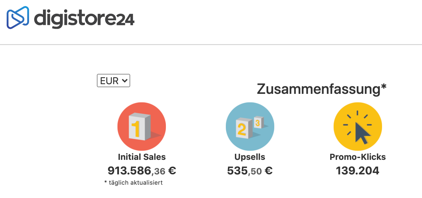 Diverse Kunden haben mit diesem roten Faden und den vermittelten Strategien Ihr Online Buisness gestartet und hier einmal exemplarisch ein Auszug aus einem Digistore24 Konto eines Kunden